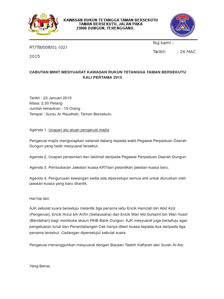 3 oktober 2014 kepada. Nama pengerusi dicatatkan terlebih dahulu. Contoh surat minit mesyuarat Saturday February 5 2022 Edit.