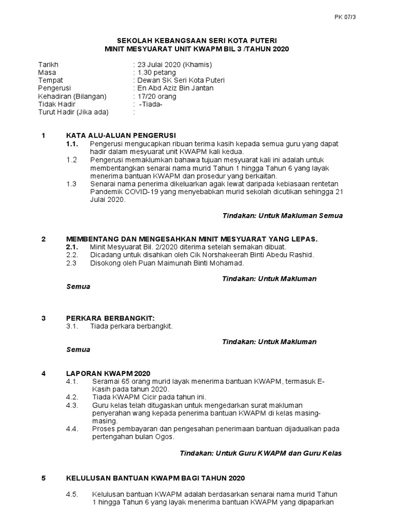 Pk07 1 Rekod Edaran Minit Mesyuarat 2 Pdf.